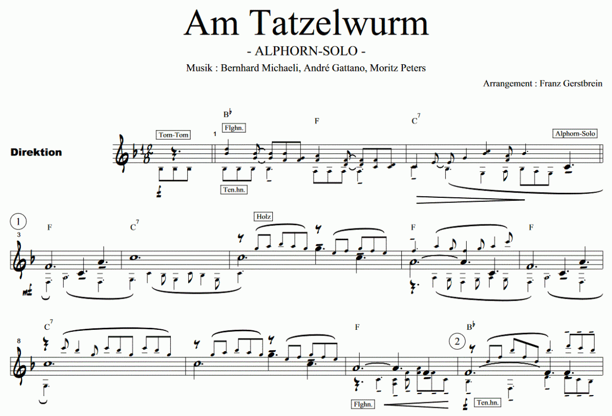 Am Tatzelwurm - Notenbeispiel