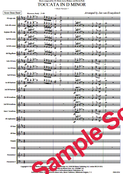 Toccata in d Minor (Rock Version) - hier klicken Toccata in d Minor (Rock Version) (Brassband), Partitur und Stimmen