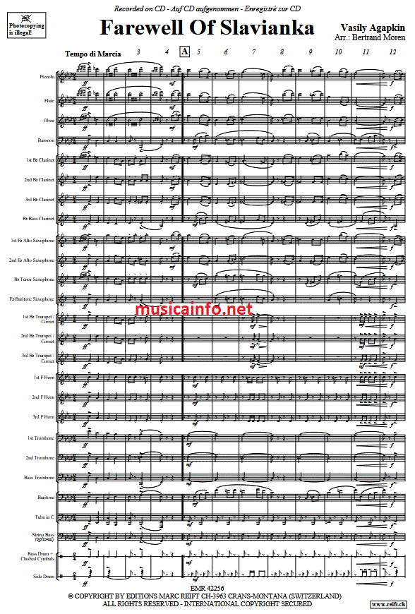 Farewell Of Slavianka - hier klicken Farewell Of Slavianka (Blasorchester; oder; Fanfarenorchester), Partitur und Stimmen 96,59