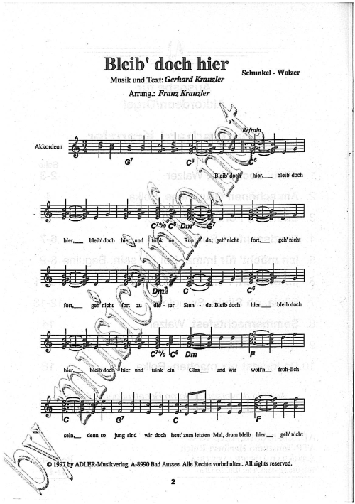 Bleib doch hier - Notenbeispiel